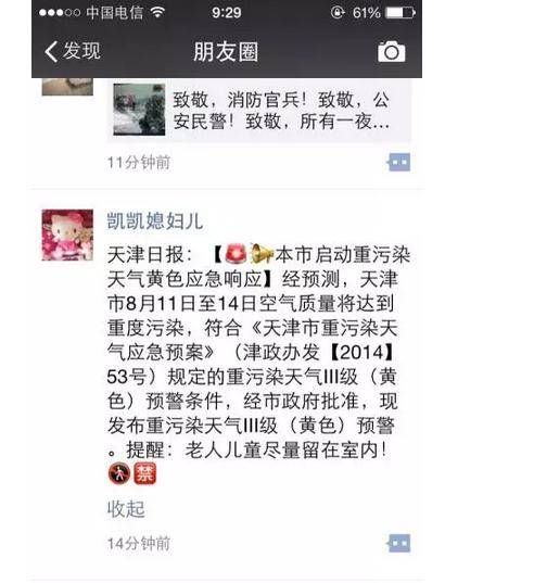 解釋:有的網友誤以為,此次重污染天氣黃色應急響應與爆炸有關,其實這是誤會。這是本報與本月11日(也就是前天)發布的消息,與此次爆炸事件并無關聯。