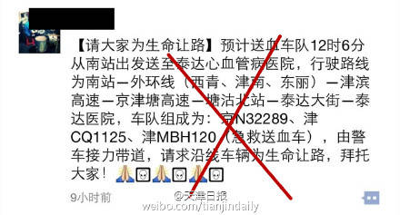 解釋:假,改編自前幾天本市轉送從南京調來p型血救助先心病患兒的
