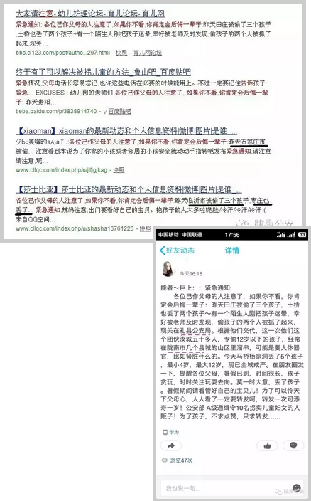 近日,我市各縣區都有網民相繼在QQ群、QQ空間及微信群、微信朋友圈發布了“搶孩子”等謠言,現以禮縣相關圖片為例說明。