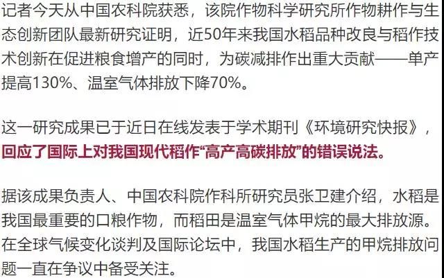 我國高產水稻高碳排放?用數據“打臉”偏見!