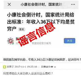文章以“小康社會進入倒計時,國家統計局給出標準:年收入36萬以下均是貧窮戶”為題,稱國家統計局提出了所謂富豪家庭、富裕家庭、中產家庭、小康家庭等的收入標準。