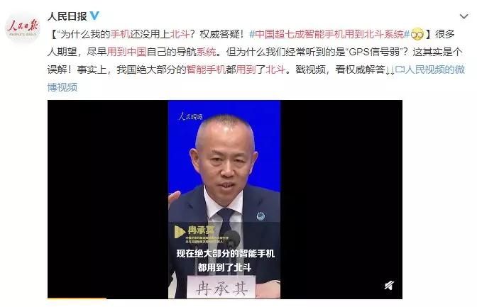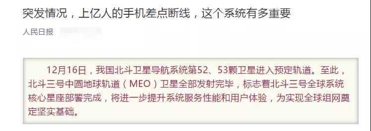 權(quán)威答疑解釋說,中國超七成智能手機用到北斗系統(tǒng)。而用戶之所以感受不到自己在使用北斗系統(tǒng),是因為手機上通常用“GPS”來泛指所有衛(wèi)星導(dǎo)航系統(tǒng)。2019年12月中旬,北斗三號M21、M22衛(wèi)星(第52、53顆北斗衛(wèi)星)在西昌成功發(fā)射,標(biāo)志著北斗三號中圓軌道(2.1萬米高度、傾角55.0°)上24顆衛(wèi)星已就位。