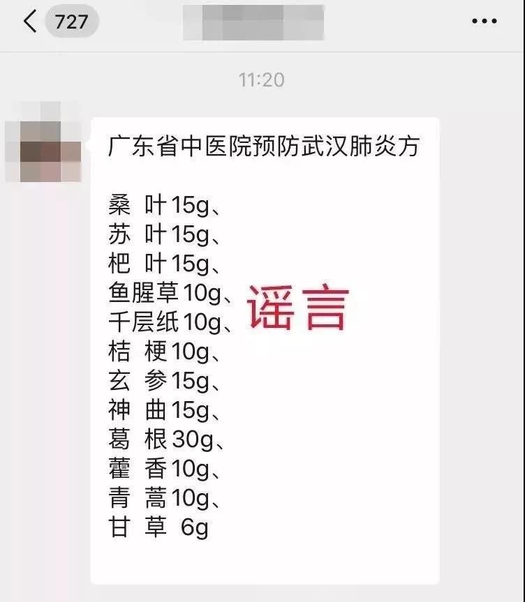 近日一份“廣東省中醫院預防武漢肺炎方”在微信群里流傳。