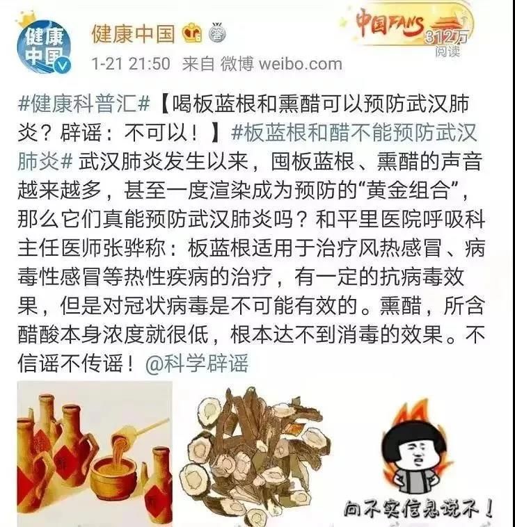 謠言十:板藍根+熏醋,能防新冠肺炎