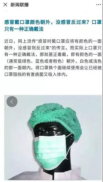 謠言二十三:感冒戴口罩顏色朝外,沒感冒反過來