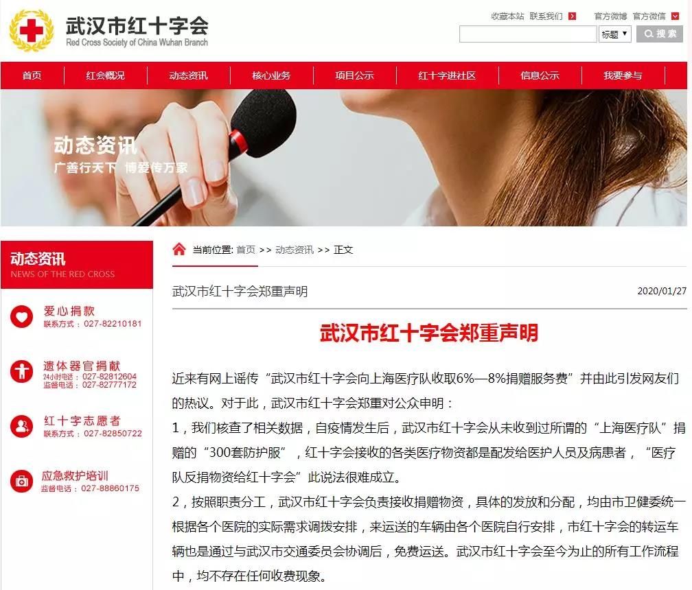 近日,有網絡傳言“武漢市紅十字會向上海醫療隊收取6%—8%捐贈服務費”。記者從中國紅十字會了解到,武漢市紅十字會只負責接收捐贈物資,具體發放分配,由武漢市衛健委統一根據各醫院實際需求調撥安排,運送車輛由各醫院自行安排,武漢市紅十字會的轉運車輛也是通過與武漢市交通委員會協調后,免費運送。武漢市紅十字會至今為止的所有工作流程中,均不存在任何收費現象。