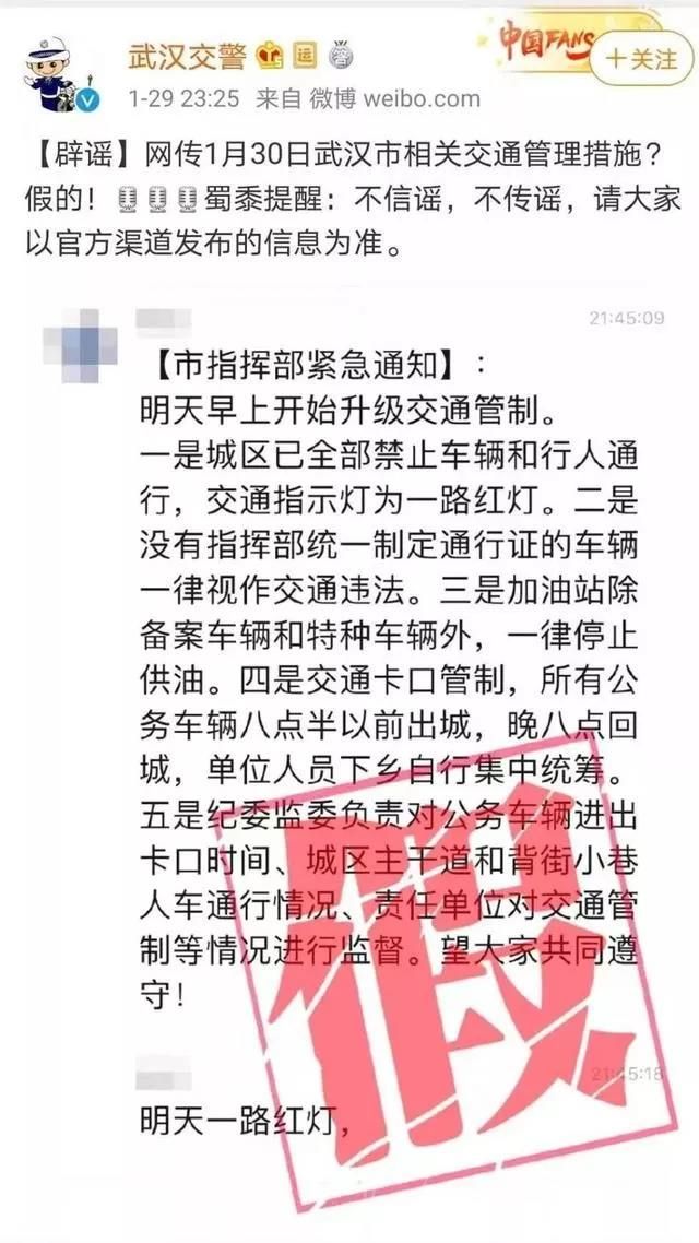 真相:29日晚,一條短信截圖在朋友圈流傳,稱武漢30日早上開始升級交通管制,城區(qū)全部禁止車輛和行人通行等。武漢交警緊急辟謠:并未出臺新的交通管制措施,該短信內(nèi)容純屬虛構(gòu)!