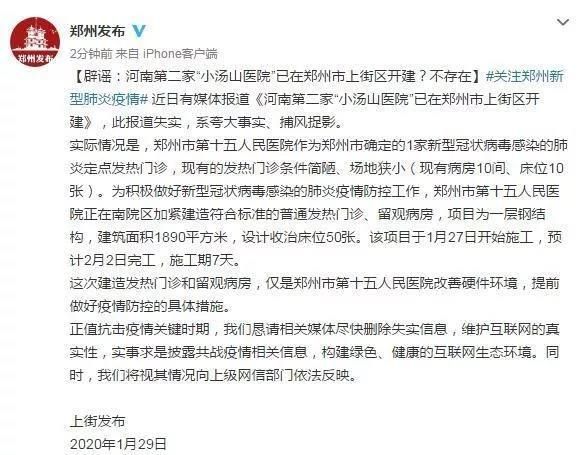 真相:實際情況是,鄭州市第十五人民醫(yī)院作為鄭州市確定的1家新型冠狀病毒感染的肺炎定點發(fā)熱門診,現(xiàn)有的發(fā)熱門診條件簡陋、場地狹小。為積極做好新型冠狀病毒感染的肺炎疫情防控工作,鄭州市第十五人民醫(yī)院正在南院區(qū)加緊建造符合標準的普通發(fā)熱門診、留觀病房,項目為一層鋼結(jié)構(gòu),建筑面積1890平方米,設(shè)計收治床位50張。該項目于1月27日開始施工,預計2月2日完工,施工期7天。