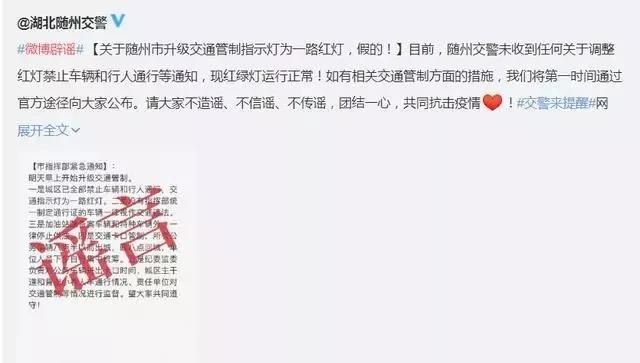 謠言六:市指揮部緊急通知:交通指示燈為一路紅燈