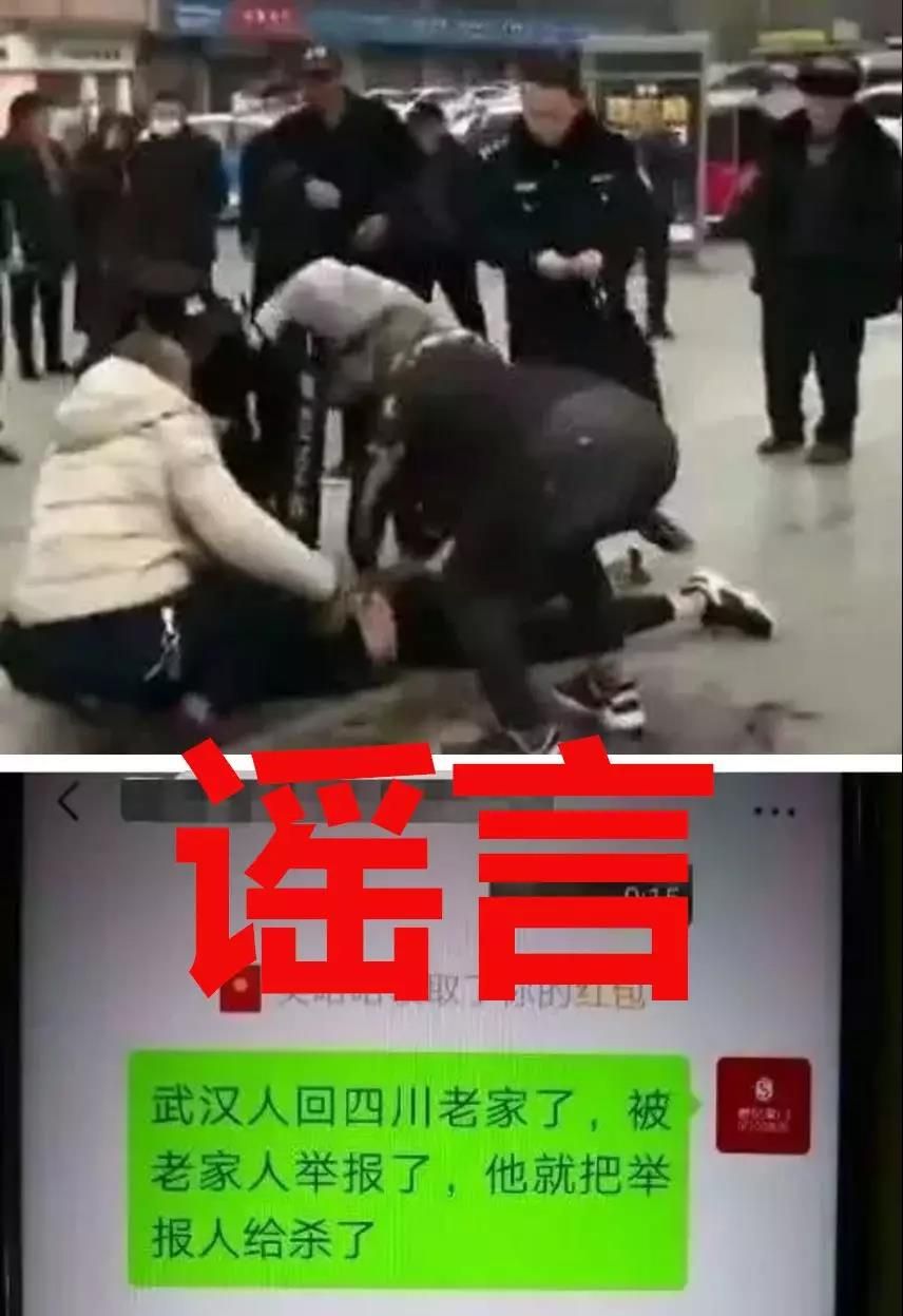 1月26日,山西忻州網(wǎng)民肖某在多個本地微信群中發(fā)布一段視頻并配文稱“武漢人回四川老家,被老家人舉報了,他就把舉報人給殺了”的謠言。