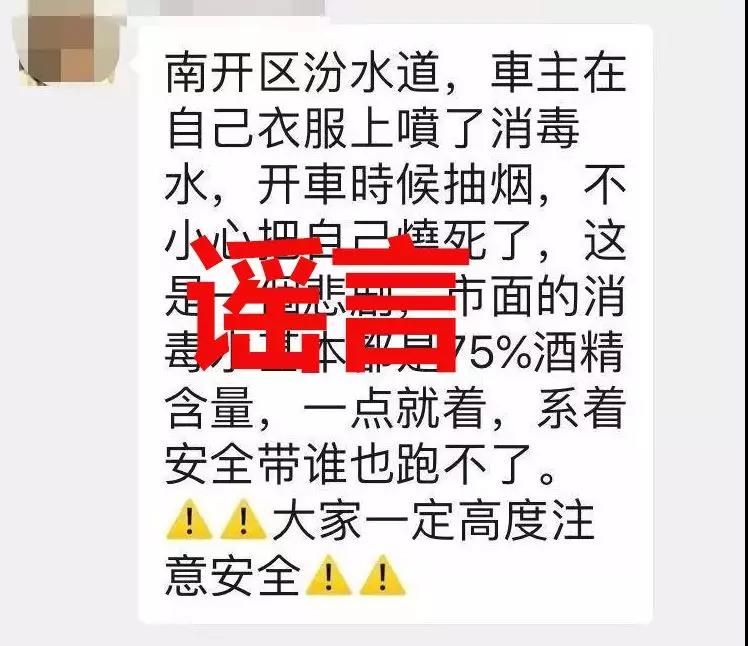 謠言八:網傳男子噴酒精消毒后開車抽煙引發燃燒