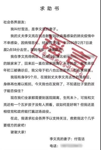 2月7日凌晨,武漢中心醫院眼科醫生李文亮,在抗擊新冠肺炎疫情工作中不幸感染,經全力搶救不幸離世。就在人們對這位“疫情逆行者”表示哀悼和敬意的時候,一些關于李醫生家人的傳言在網上傳播,“懷孕的妻子感染住院”“已經用了最后的醫療手段”“李醫生妻子的求助書”......