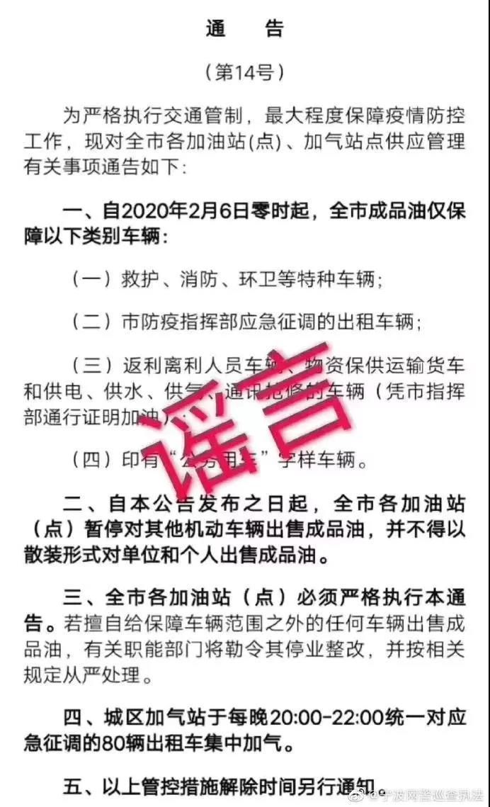 寧波網警對此回應稱,根據寧波市聯防聯控辦公室要求,目前中國石化加油站24小時全部正常營業,但前往加油時請務必佩戴口罩,并盡可能減少外出。提醒大家,以后遇到類似沒有具體地區,發布格式混亂的消息,切勿輕信。
