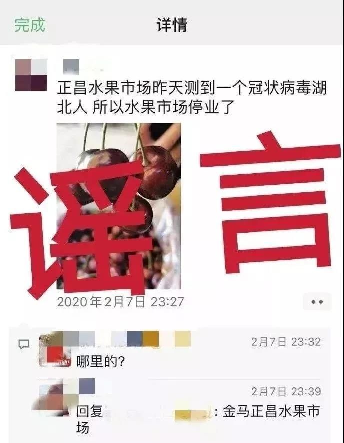近日, 網絡上流傳一則信息稱:“正昌水果市場昨天測到一個新型冠狀病毒湖北人,所以水果市場停業了”。