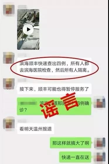 近日,在溫州本地微信群、朋友圈里流傳著“濱海順豐快遞查出四例,所有人都去濱海醫院檢查,然后所有人隔離”等不實言論,引發部分民眾恐慌與擔憂。