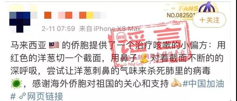 近日,一則“馬來西亞華僑無意中發現的生活偏方,切開生洋蔥,吸氣幾十下,洋蔥的刺鼻辣味有殺菌作用,可預防新型冠狀病毒肺炎……”的消息在網上流傳開來。