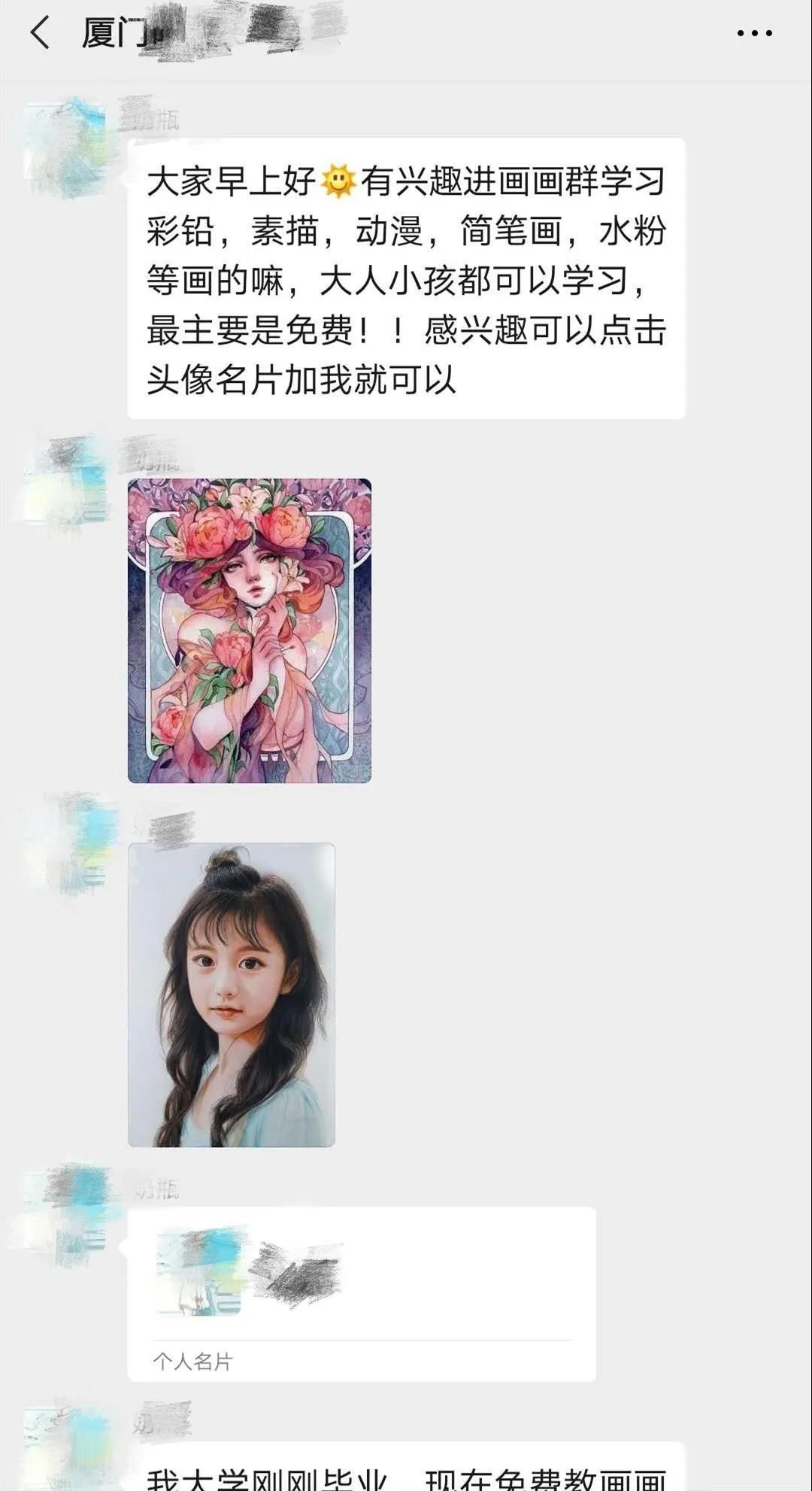 "有想進(jìn)畫畫群的嘛,群里免費學(xué)習(xí)國畫,寫意花鳥畫、山水、水墨、工筆白描。課程需要人氣,加我微信 XXXXXXX進(jìn)群學(xué)習(xí),通過:直播課+資料+圖片過程進(jìn)行教學(xué),最主要是免費的。"