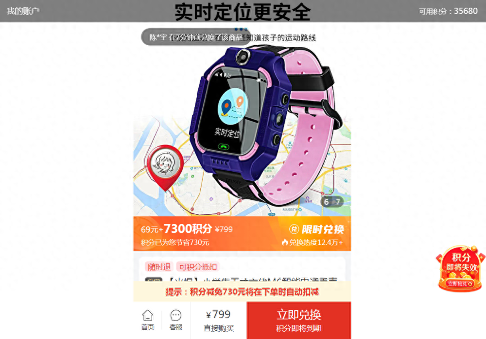河南消費者馮先生說,前些日子收到一條短信,“說我有3萬多積分將在次日過期,并提供了兌換鏈接,署名‘服務通知’。”馮先生誤以為是移動運營商的提醒,隨即點開鏈接,以現金加7300積分為孩子購買了“價值”799元的“天才M6智能電話手表”。收到后發現手表做工低劣,兩小時就沒電了,且無法退貨。