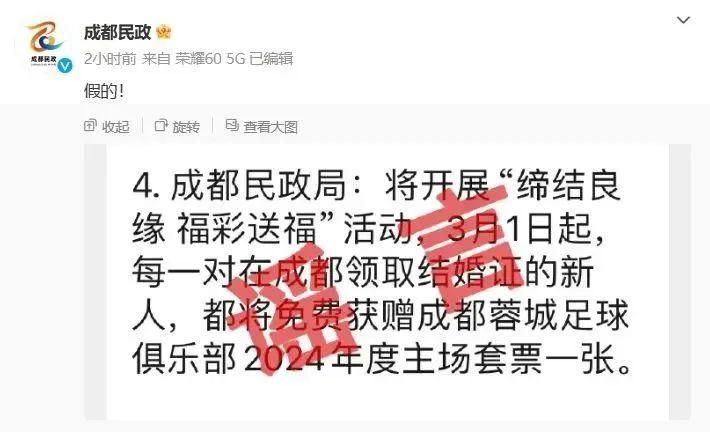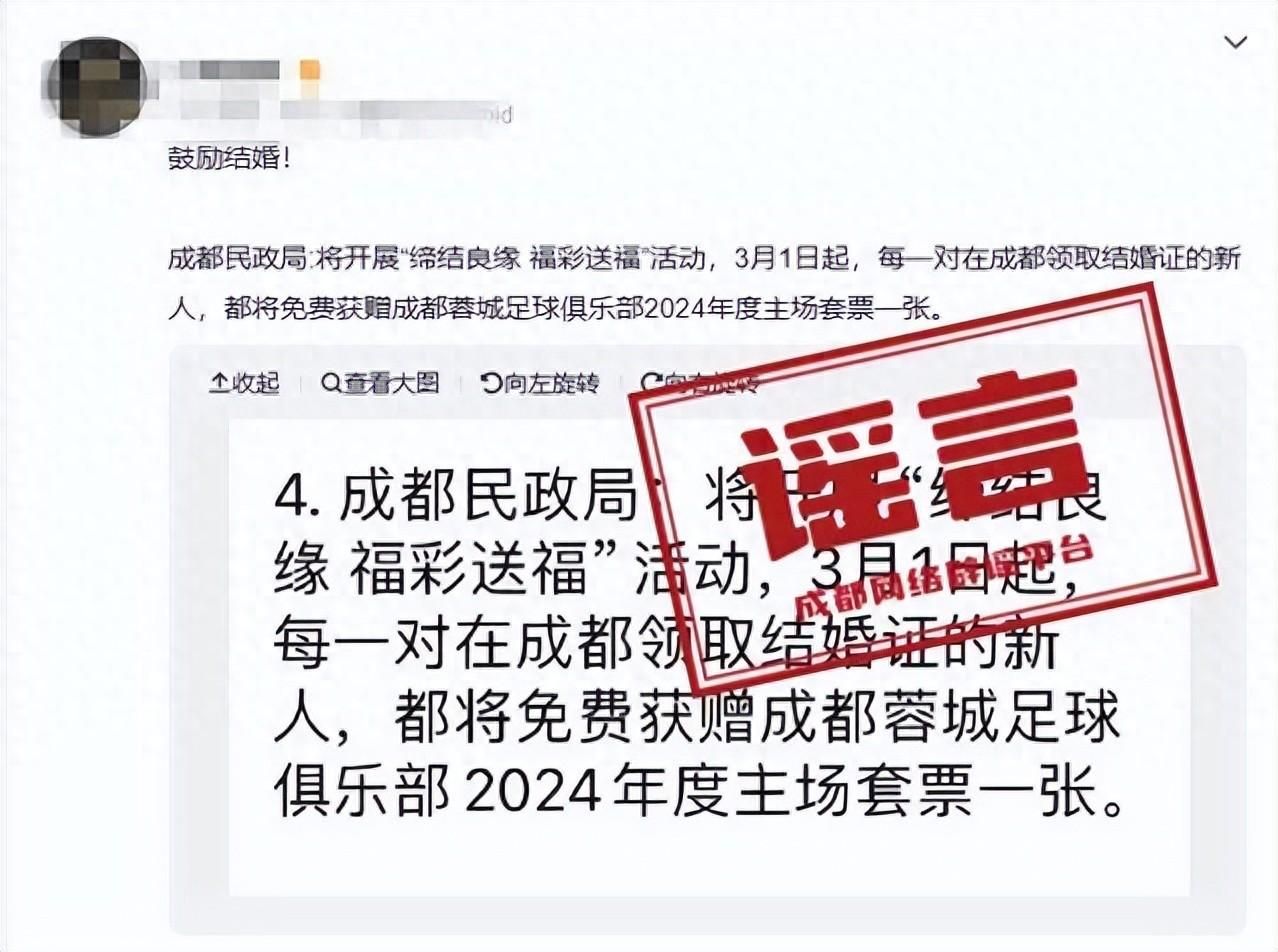 稿件來源:成都網絡辟謠、成都市民政局 發布時間:2024-02-29