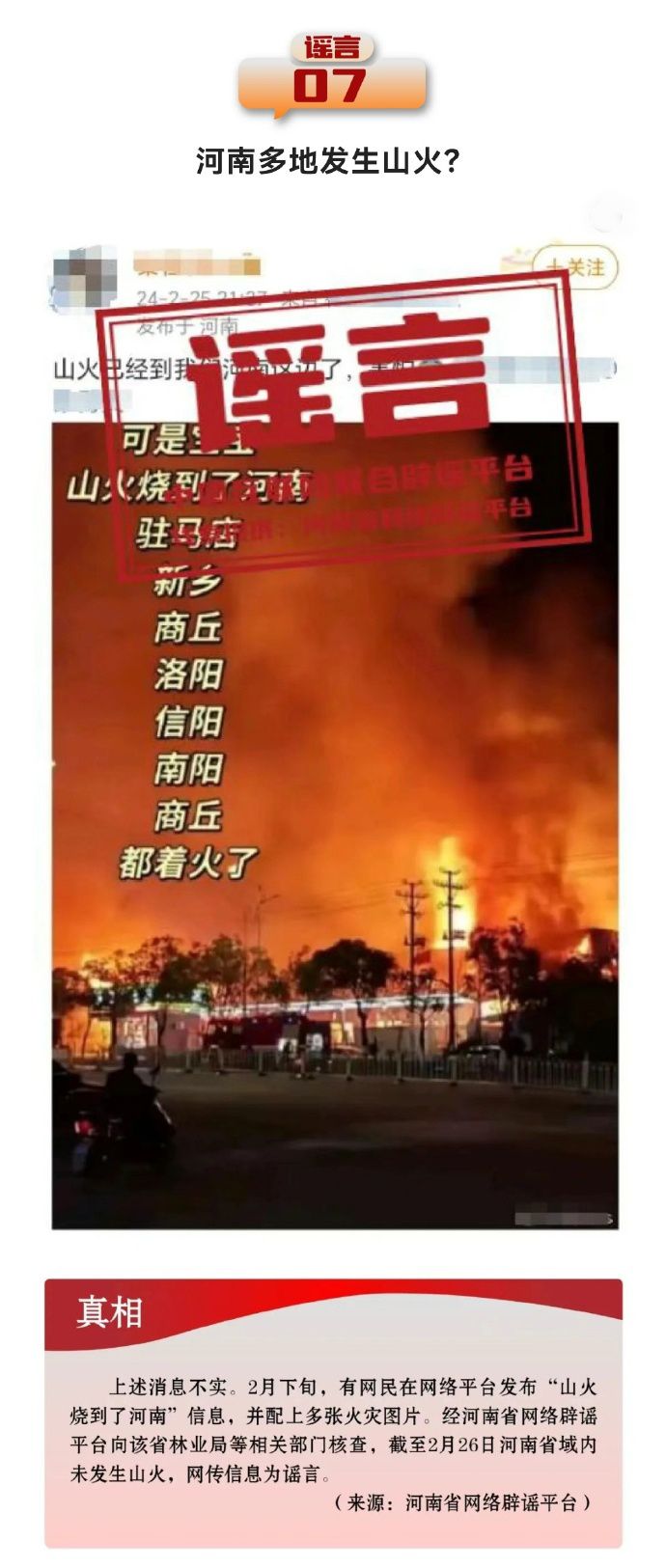 打擊網絡謠言 共建清朗家園 中國互聯網聯合辟謠平臺2024年2月辟謠榜