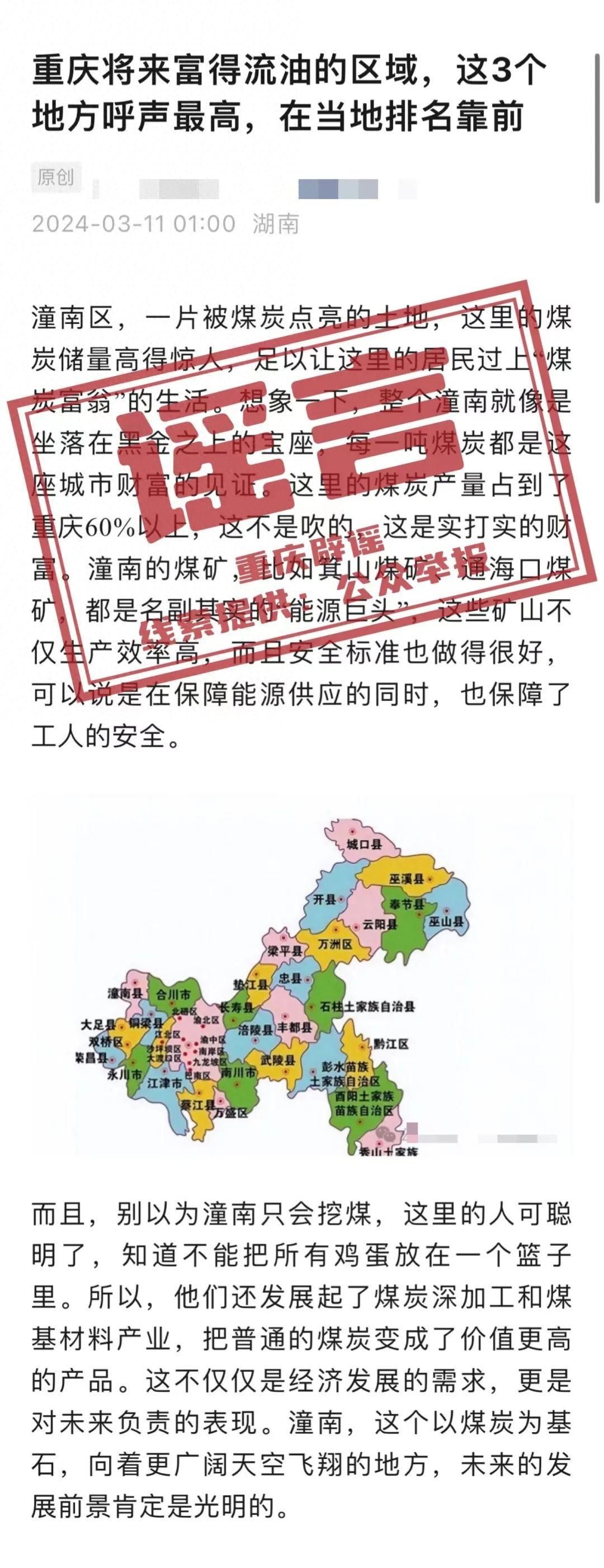 “煤炭儲量占到了重慶60%以上”?潼南區什么時候登上“黑金”的“寶座”?經重慶市潼南區規劃自然資源局核實,網傳信息為謠言。截至目前,潼南區暫未發現煤炭資源。
