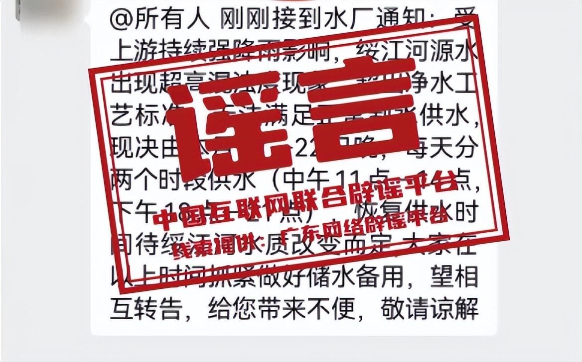 謠 言 廣東綏江河原水水源不足,將進行分時段供水?