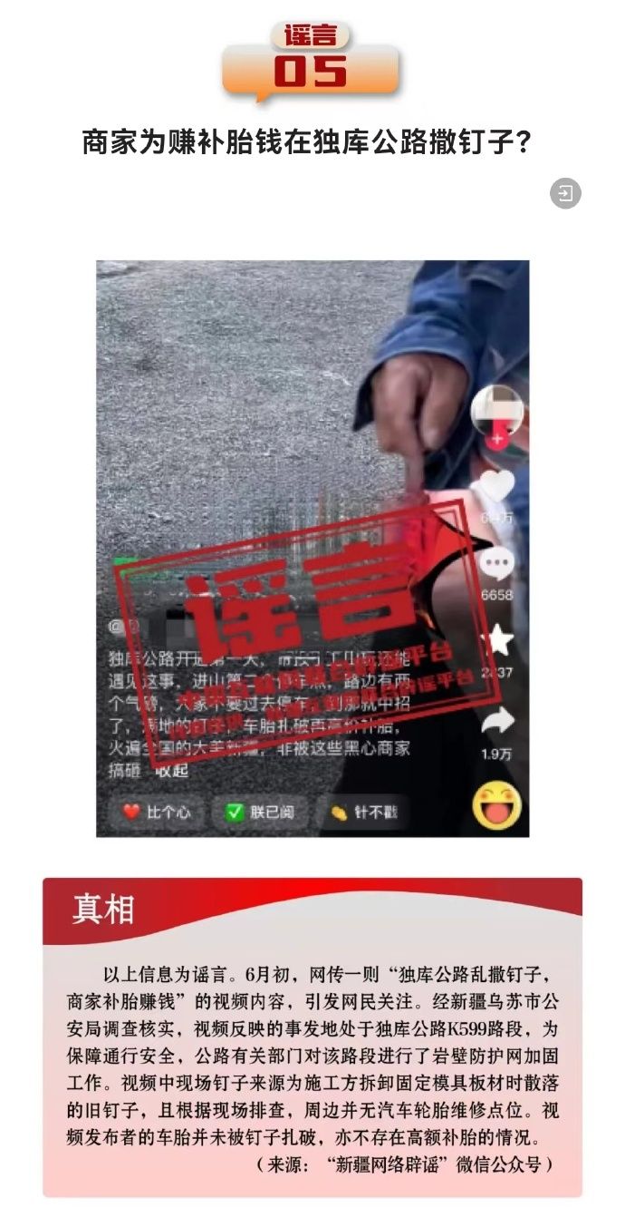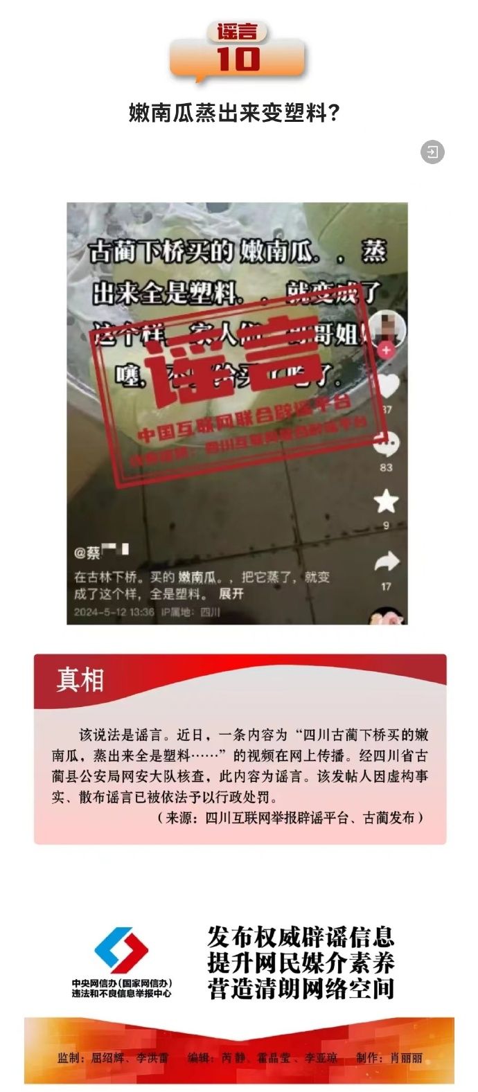 打擊網絡謠言 共建清朗家園 中國互聯網聯合辟謠平臺2024年6月辟謠榜
