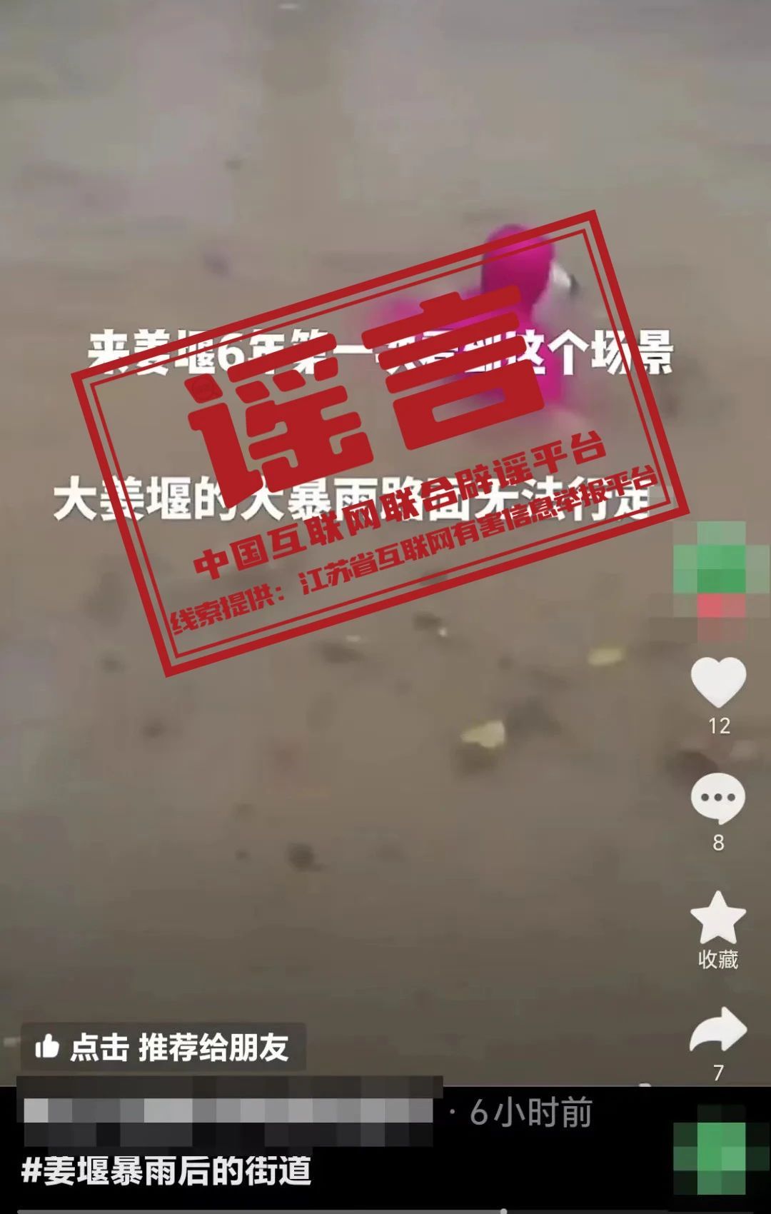 謠 言 江蘇泰州姜堰大暴雨后路面無法行走?