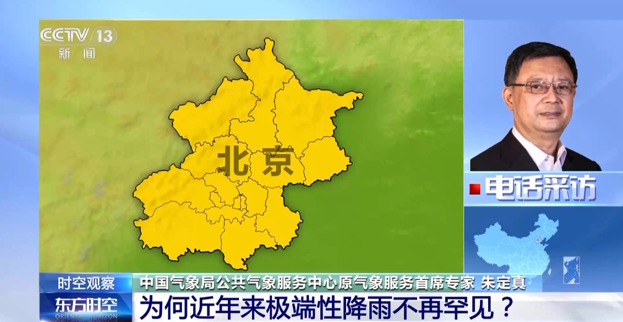 中國氣象局公共氣象服務中心原氣象服務首席專家 朱定真:大家感覺現在極端性降雨好像越來越頻繁。首先是在全球變暖這個大背景下,因為暖空氣里面含水量比冷空氣或者偏冷的空氣里面是要多的,所以現在即便降水日數可能在減少,但是一旦出現降水,雨強就會比較大。在全球變暖的過程中,亞洲的季風也發生了一些變化,所以這一些都使降水的季節性、區域性、強度都發生了一些轉變。