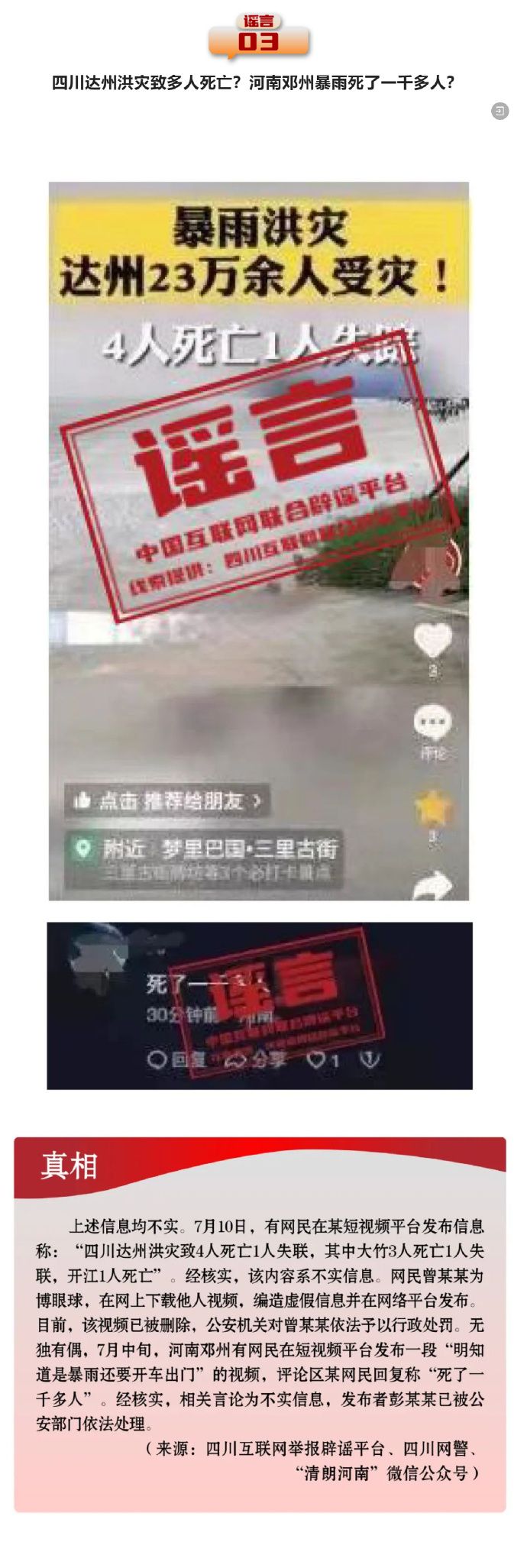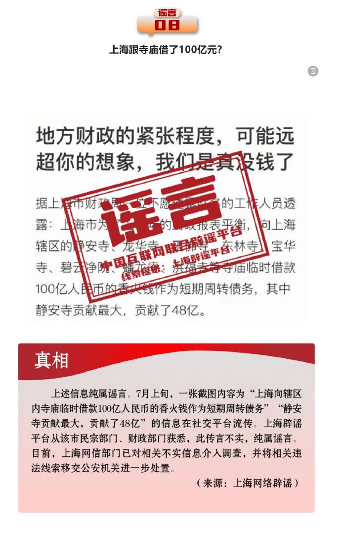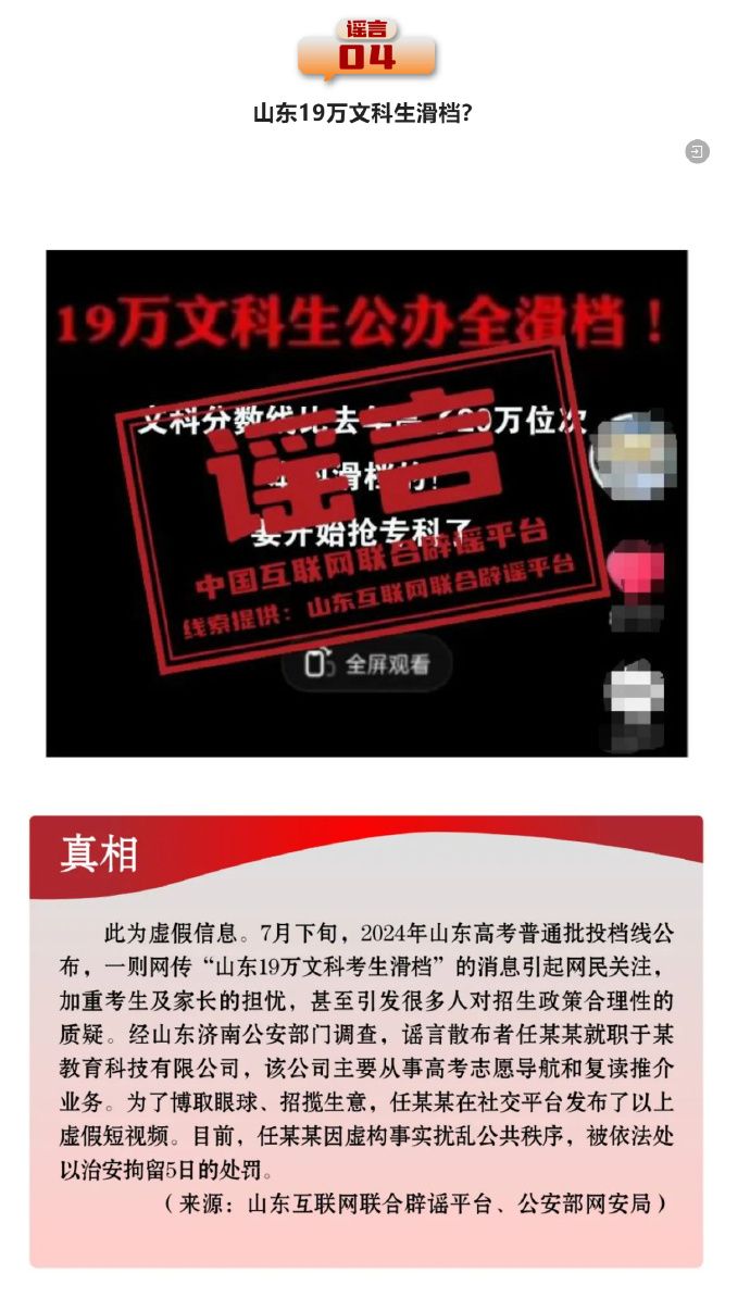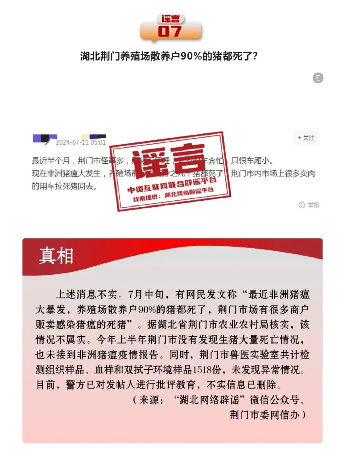 打擊網絡謠言 共建清朗家園 中國互聯網聯合辟謠平臺2024年7月辟謠榜