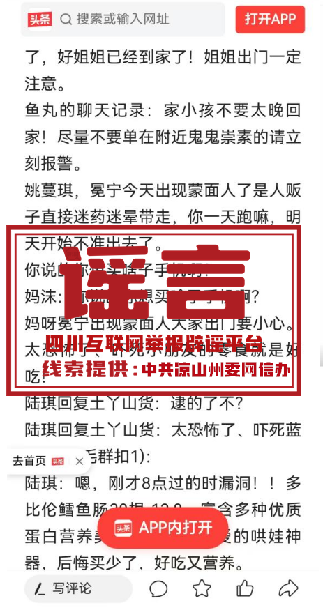經(jīng)州、縣(市)兩級網(wǎng)信、公安調(diào)查核實(shí),相關(guān)信息均為不實(shí)信息。涼山近期出現(xiàn)的個別未成年人離家出走和走失事件中的涉及人員均已及時找到,經(jīng)核查不存在“人販子”和被拐賣情況。個別網(wǎng)民在未經(jīng)核實(shí)的情況下,在網(wǎng)絡(luò)上發(fā)布、轉(zhuǎn)發(fā)不實(shí)信息,制造傳播謠言,屬地公安機(jī)關(guān)已依法對其進(jìn)行處罰,并責(zé)令刪除謠言信息。