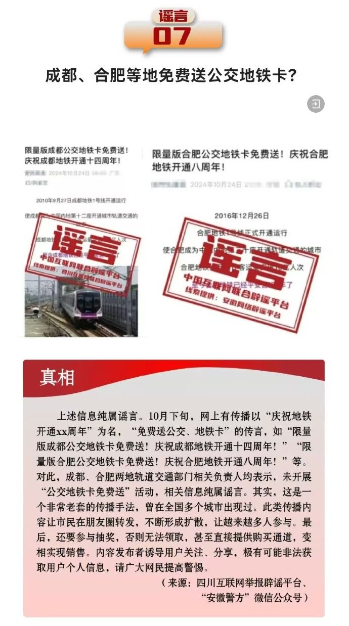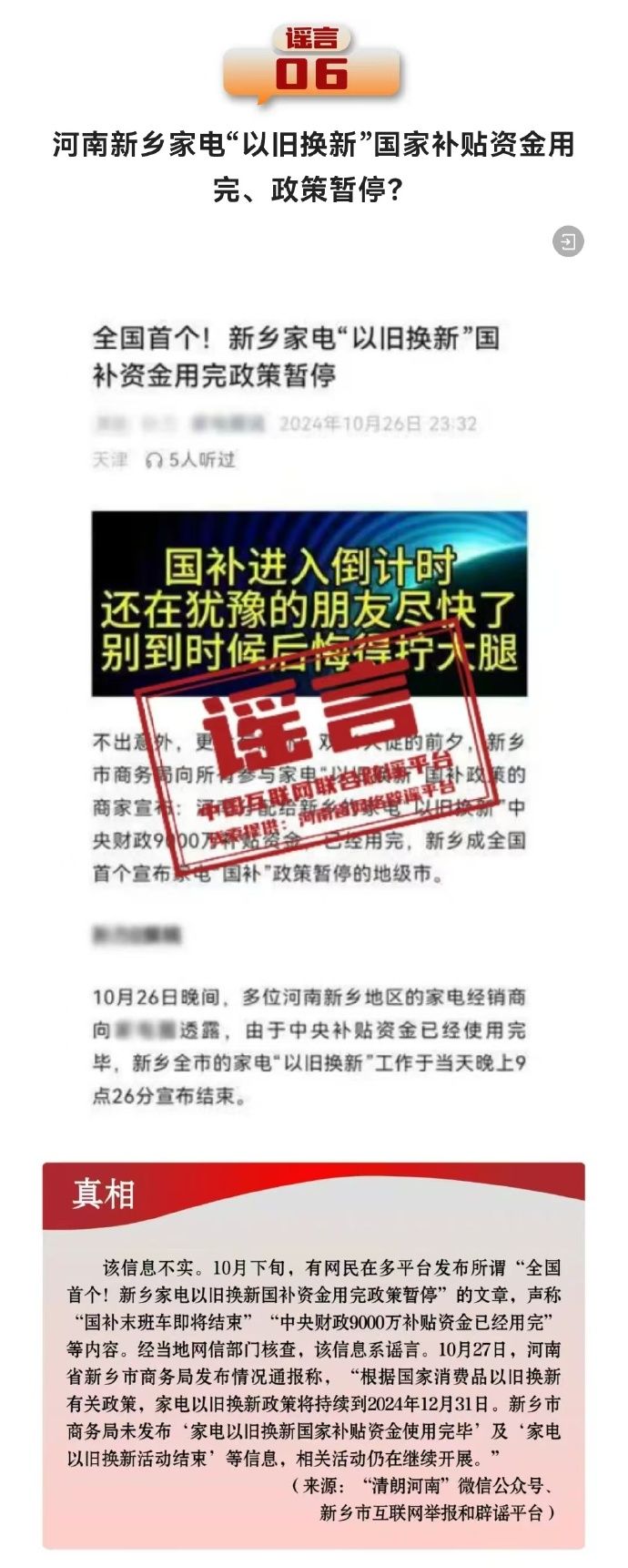 打擊網(wǎng)絡(luò)謠言 共建清朗家園 中國互聯(lián)網(wǎng)聯(lián)合辟謠平臺2024年10月辟謠榜