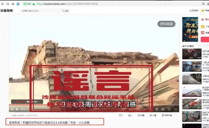 但有部分自媒體賬號(hào)罔顧事實(shí)和真相,發(fā)布與此次地震不符的地震廢墟或?yàn)?zāi)后救援凄慘等地震謠言圖片和信息,博取流量誤導(dǎo)網(wǎng)民。