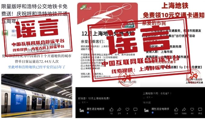 其實,這是一個非常老套的傳播手法,此前曾在成都、合肥等多個城市出現過,并已被官方權威辟謠【相關辟謠信息請見→今日辟謠(2024年10月25日)】。(來源:上海網絡辟謠、呼和浩特地鐵)