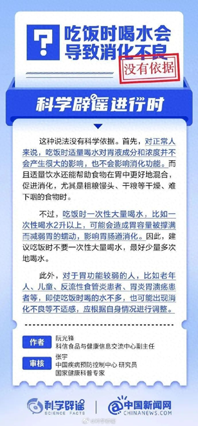 吃飯時(shí)喝水會(huì)導(dǎo)致消化不良?沒(méi)有依據(jù)