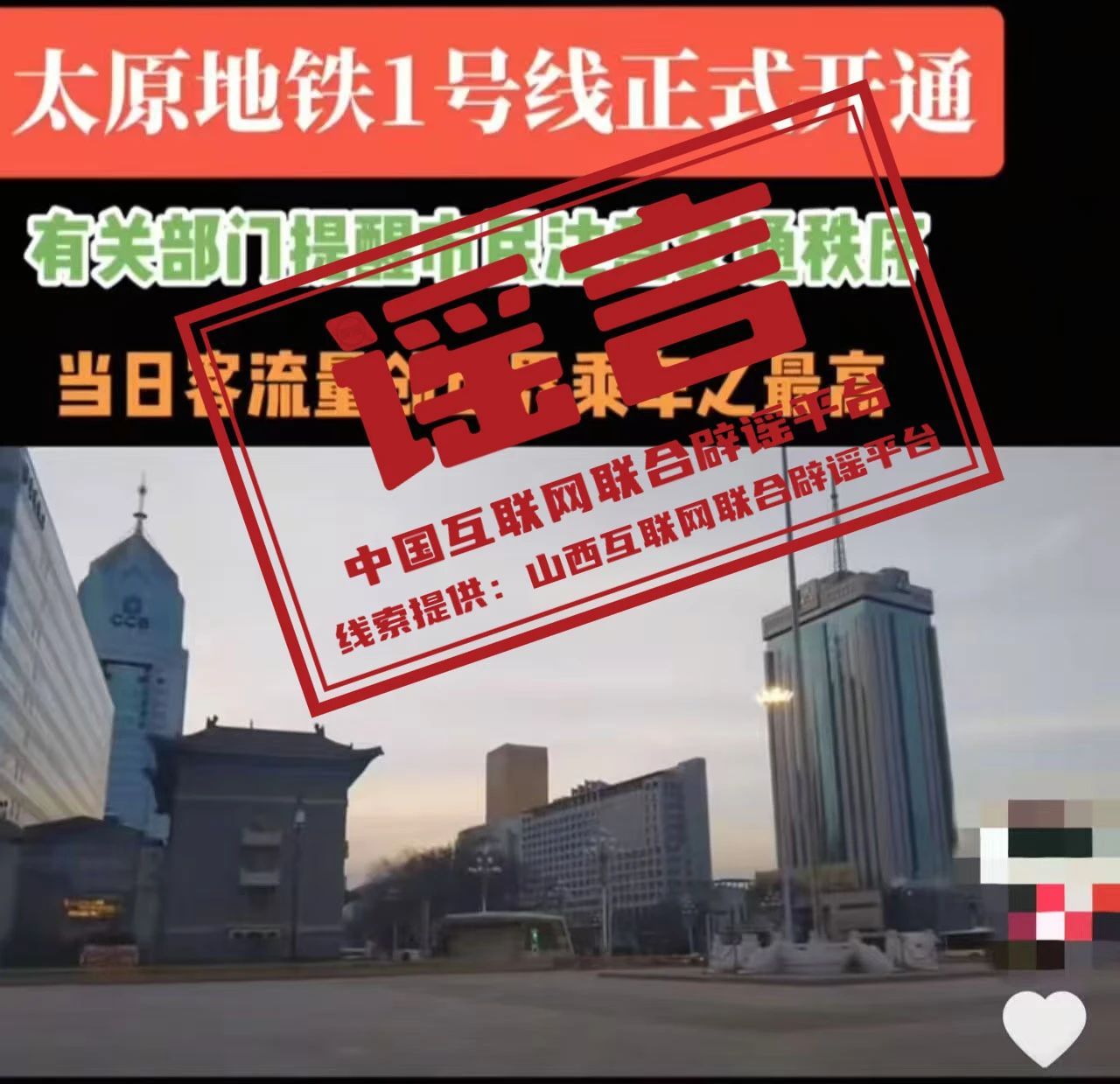 謠 言 太原地鐵1號線已正式開通?