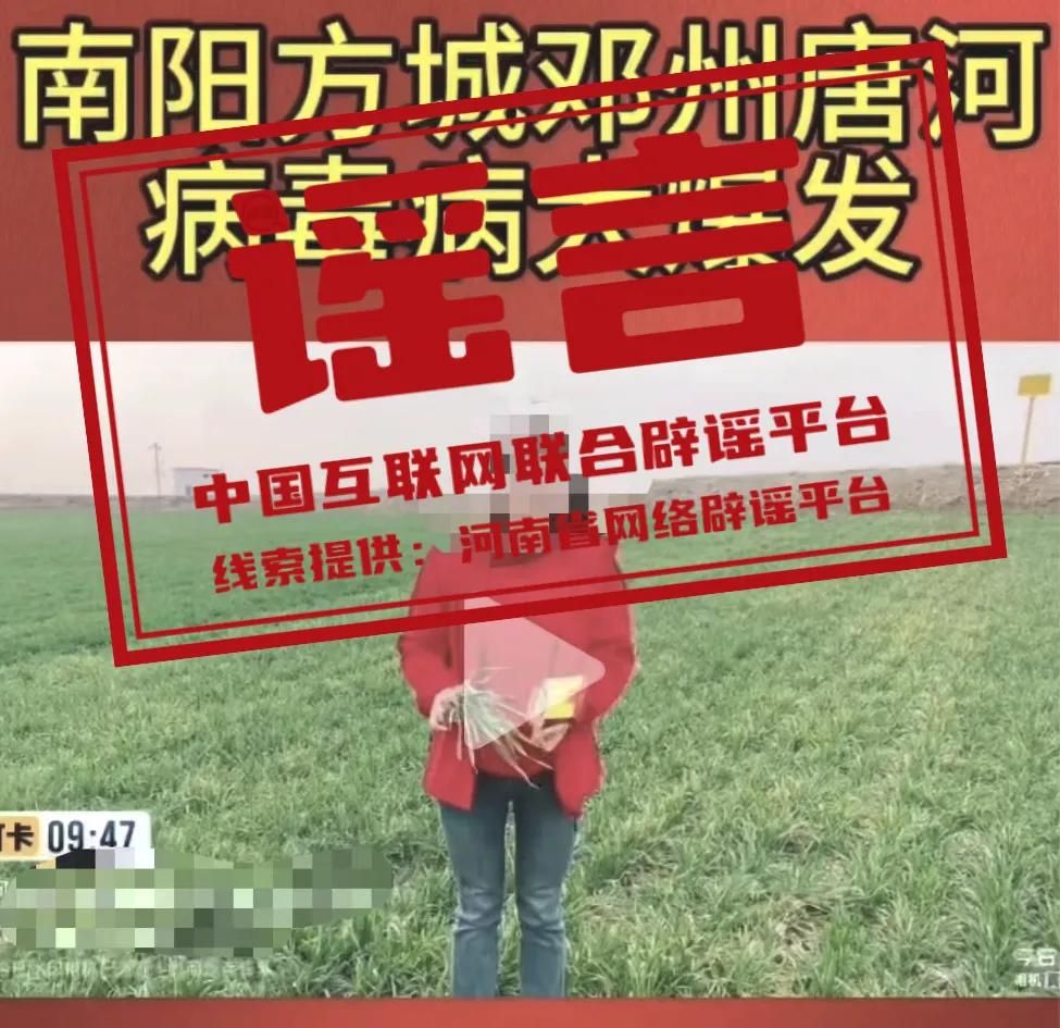 真相:近日,某網絡平臺用戶發(fā)布視頻稱:“南陽方城、鄧州、唐河小麥病毒大爆發(fā)”,引發(fā)關注。經聯合查證,截至目前,南陽市域小麥整體生長良好,不存在視頻中所稱“小麥黃花葉病毒病大爆發(fā)”等情況,網傳信息為謠言,視頻中提及的各縣已分別就不實信息進行了辟謠。另據農業(yè)農村部門反饋,現階段小麥開始返青,極少數麥田葉片發(fā)黃是小麥品種、低溫及除草劑濃度較大所致,該情況會隨氣溫回升而改善。(來源:河南省網絡辟謠平臺)