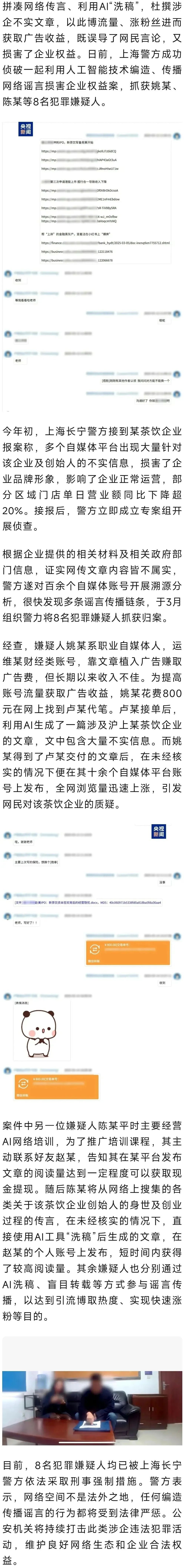 拼湊傳言、AI洗稿,姚某等8人被采取刑事強制措施