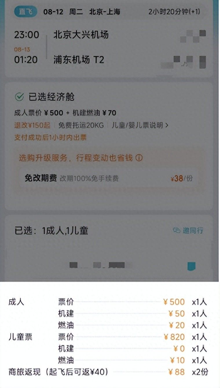 成人票只需500元,兒童票卻要820元,價格高出60%以上——近期,市民田先生計劃帶孩子去上海游玩,在某在線旅游平臺搜索“一大一小”從北京到上海的機票時,大跌眼鏡。“小朋友的票竟然比大人的還貴,難以理解!”再三考慮后,田先生最終選擇乘坐高鐵出行,孩子可以享受半價優(yōu)惠。