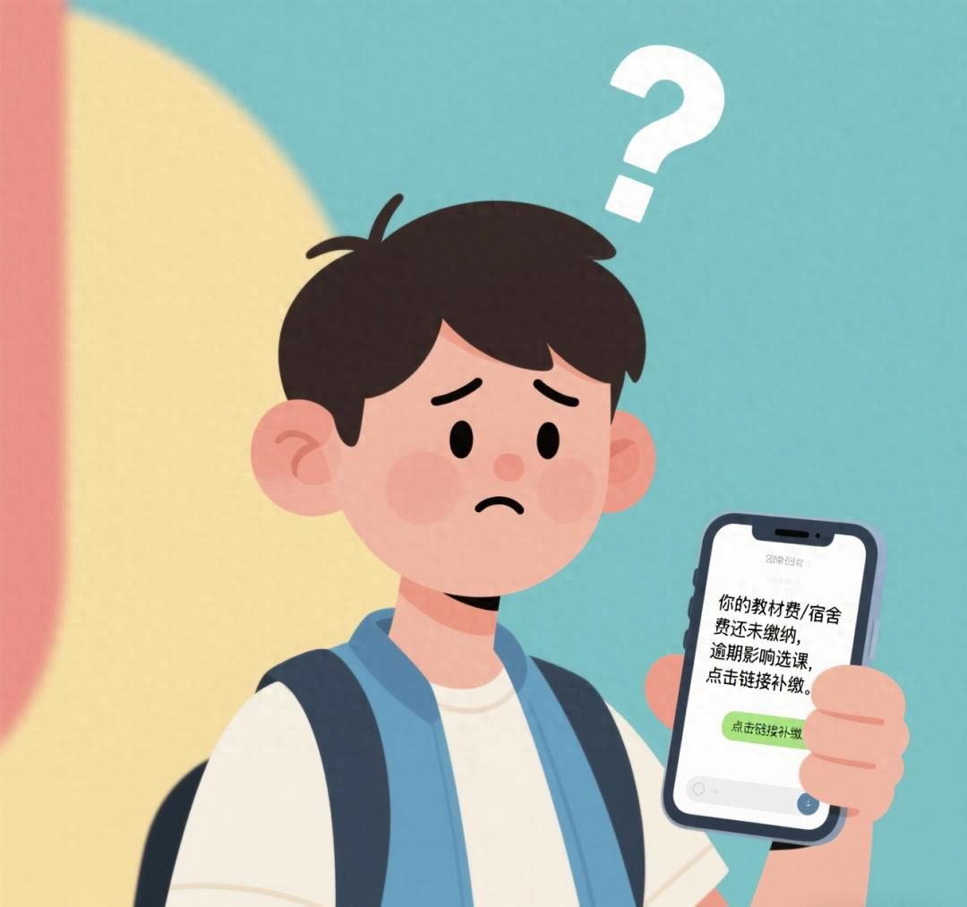 “同學你好,你的教材費/住宿費還未繳納,逾期影響選課,點擊鏈接補繳”——看到這樣的短信或群消息,是不是瞬間慌了?