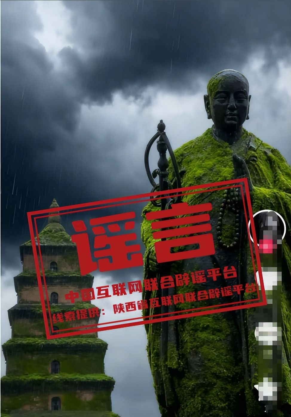 謠 言 大雁塔玄奘銅像長滿青苔?